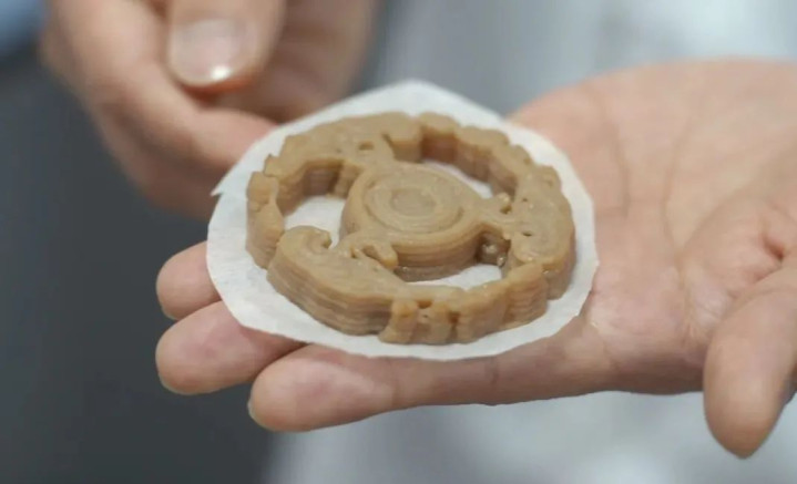 2024年,团队首次成功将藕纤维提取出来,通过添加不同比例的水、藕淀粉等成分,借助3D打印技术,将莲藕转化成有生物相容性和可调机械强度的骨支架。